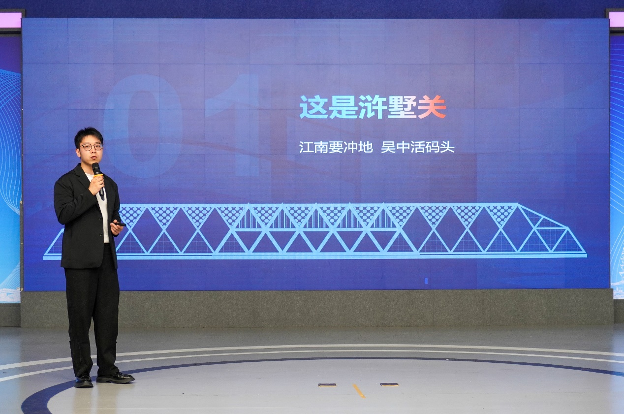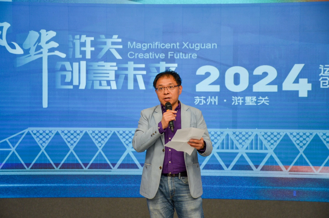 浒墅关宣传片《千载风华,运河流芳》展映后,于乐平讲述了浒墅关的名称来源和浒墅关经开区的建设成果,并陈述了大赛的创办背景、奖项设置等具体情况。他提到,浒墅关正在着力打造“一山一水一田园”的文旅品牌,促进相关产业新业态的发展,亟待同学们创作出集原创性、特色性、针对性和可转化性于一体的的文化创意产品,助力浒墅关做好历史底蕴、文化意境的对外宣传和实用性转化。