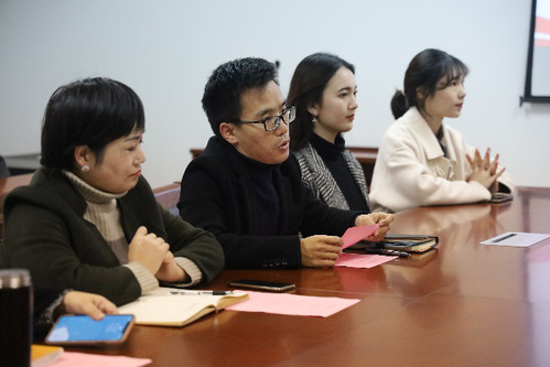 2019年传媒学院连续第六年获得新生舞蹈大赛一等奖,也是四年内第三次捧得传承杯,为进一步传承新舞精神,学院组织相关同学召开新舞精神分享会。出席人员有学院党委副书记、副院长宋海英,学工办宋智老师,2019级辅导员王雁冰老师,2016级新舞代表吴限,2017级新舞代表田玉华,2018级新舞代表张明月,新舞主持人代表耿晟凯,2019级全体新舞队员。