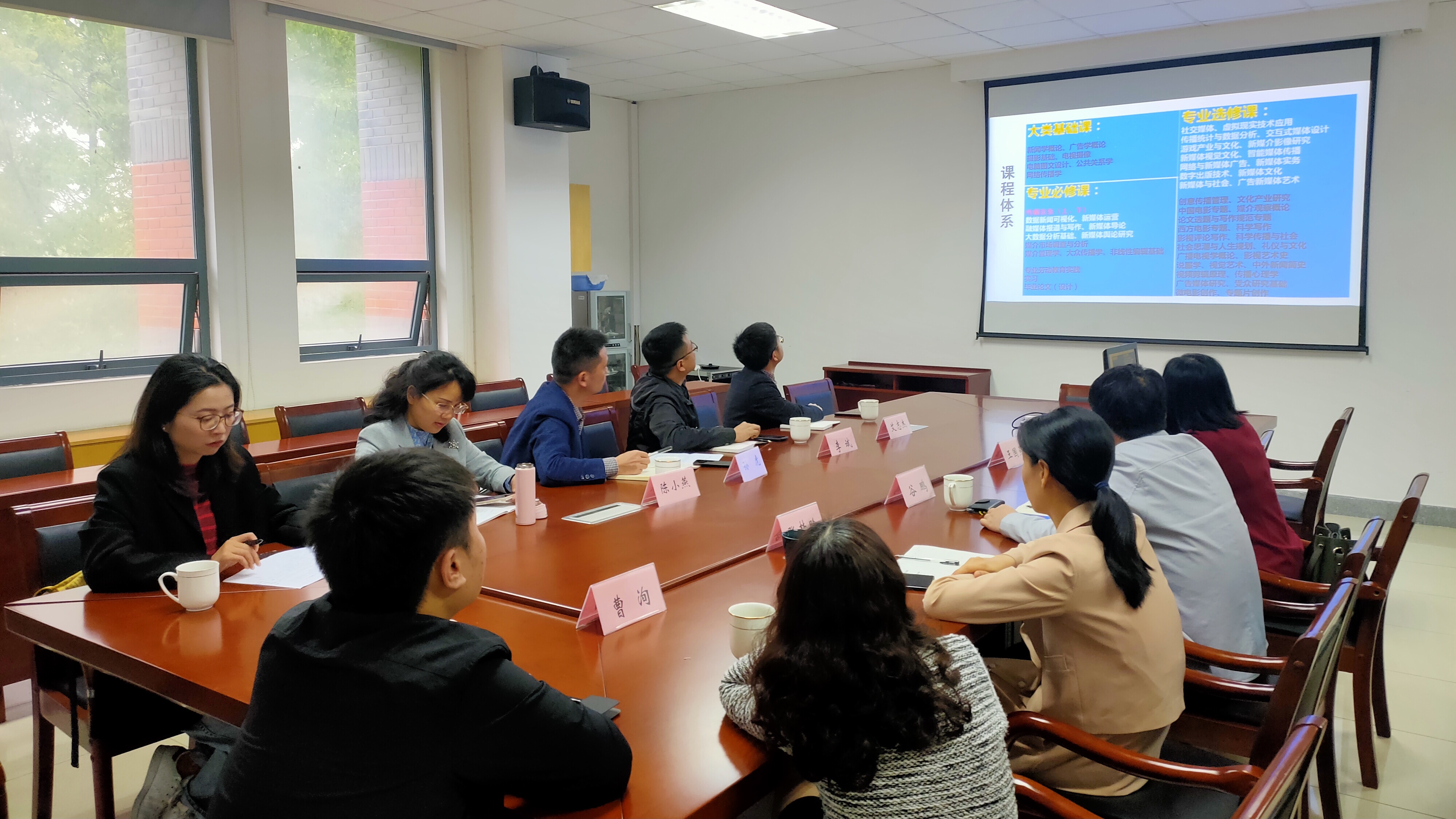王国燕主任随后就本专业的人才引进战略、特色研究方向、学生培养定位与课程体系、国际大学生新媒体节、教材建设与课程改革、学科竞赛以及出国学习情况等进行了详细介绍。座谈会后,孙虎副院长一行参观了我院的演播厅、新媒体实验室、计算及图文设计实验室、动漫游戏制作实验室等。
