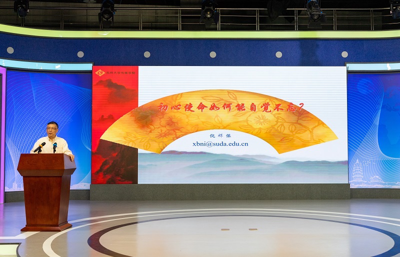 5月8日下午,我院“初心使命如何能自觉不忘?”党史学习教育专题讲座在学院一楼演播大厅举行。本次讲座由学院党委和关心下一代工作委员会联合举办,邀请到了苏州大学电影电视艺术研究所所长、教授、博士生导师、学院退休教师倪祥保担任主讲嘉宾,学院党委书记、关工委主任宁正法,关工委副主任、退休教师王苏光,党委副书记、副院长、关工委副主任宋海英,团委书记王雁冰,学工办副主任朱飞,以及部分学生党员和入党积极分子出席了本次讲座。讲座由宋海英主持。