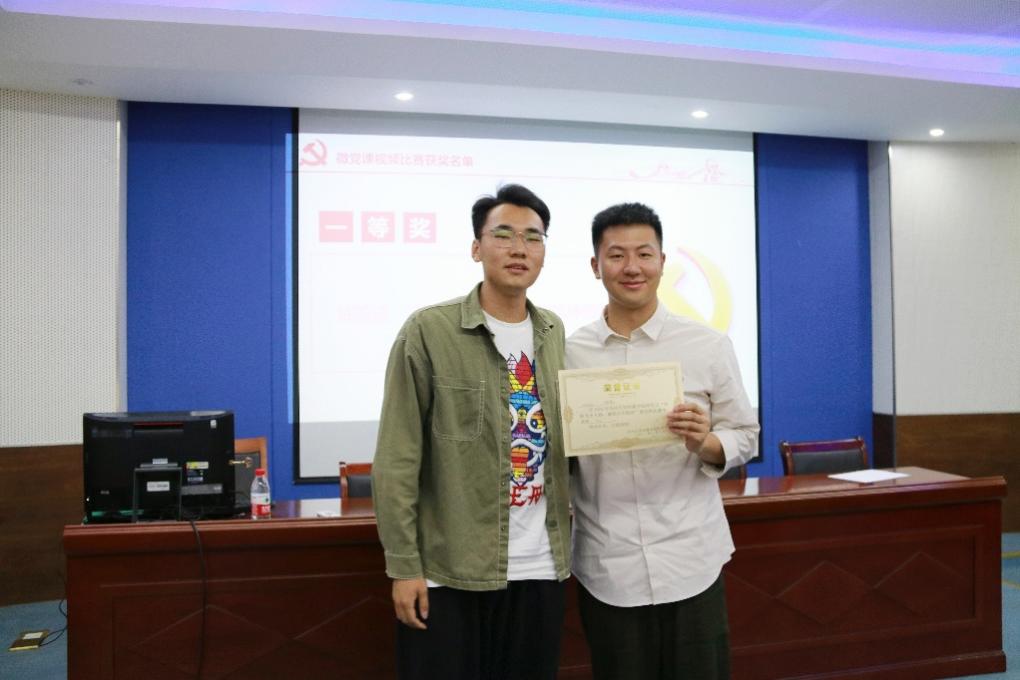 最后是微党课视频比赛的颁奖环节,由各支部的副书记、宣传委员和纪检委员为本次比赛的优秀奖、三等奖、二等奖和一等奖获得者颁奖。