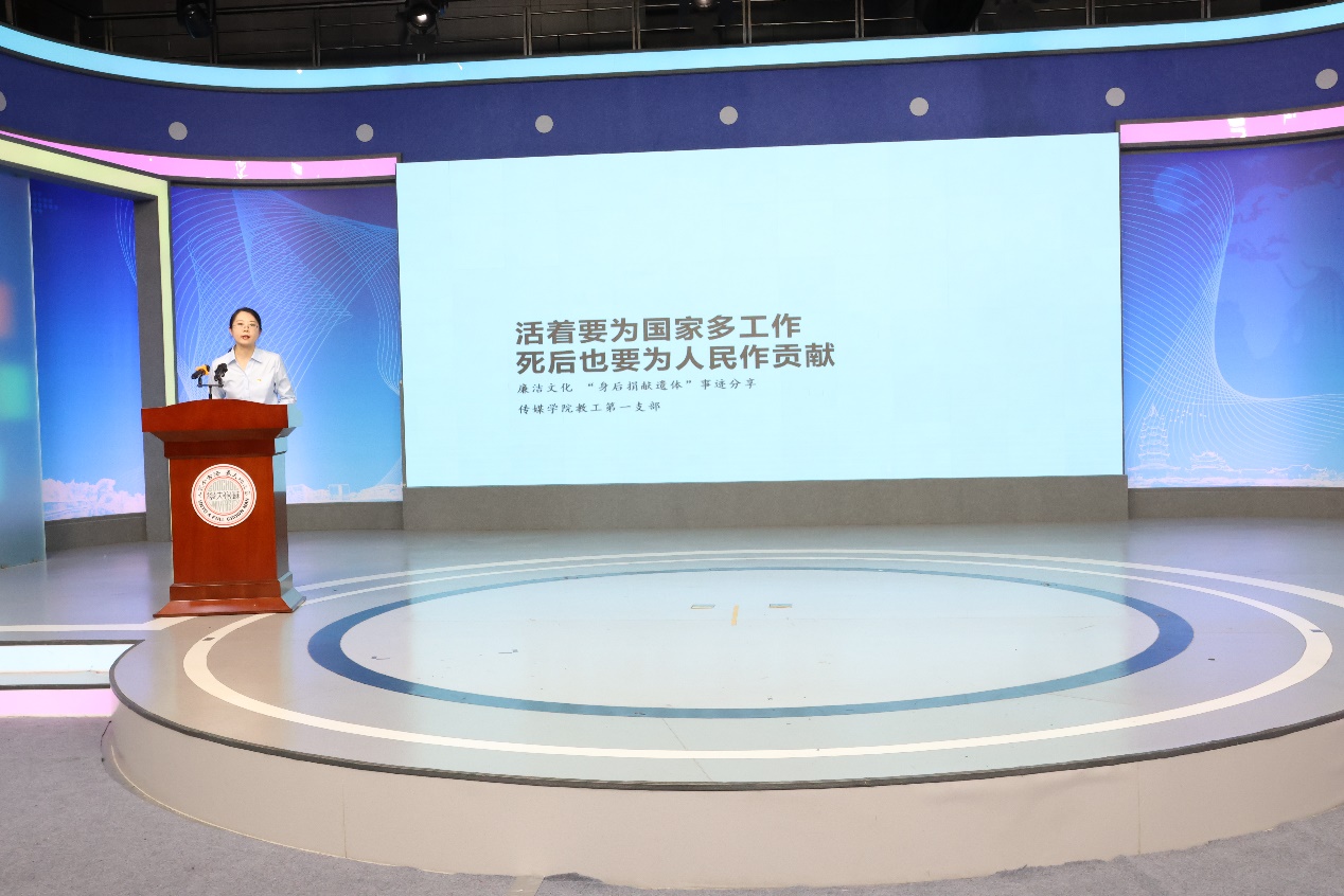在“廉洁文化”环节,传媒学院4位老师和同学讲述了苏州大学百廿余年办学历程中涌现出来的廉洁故事,为大家深入剖析这些奋斗者先公后私、勤俭节约、甘于奉献、廉洁齐家的高尚精神品质。