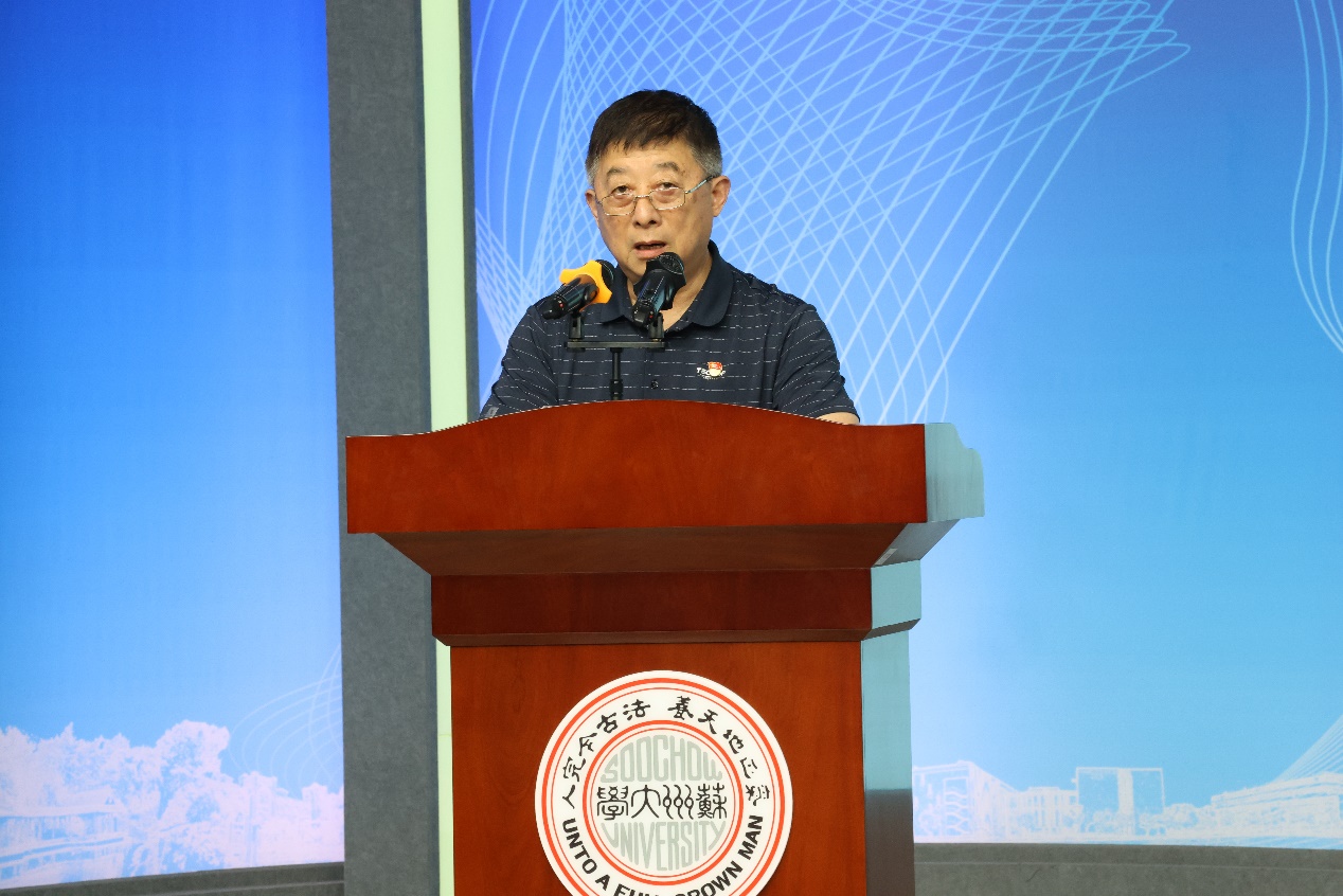 传媒学院退休党支部代表王苏光分享了苏大“惠寒”精神的起源和传承,讲述了苏州大学师生28年来扶贫助学苏大惠寒学校、湖南桑植县谷罗山希望小学的故事。他以自己的亲身经历,鼓励党员师生们积极参与助学工作,传承和发扬“惠寒”精神,情感真挚,使在场听众深受鼓舞。
