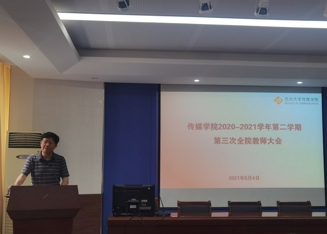为进一步加强党史学习教育,推动学院高质量发展,6月4日下午,传媒学院2020-2021学年第二学期第三次全院教师大会在5148会议室举行。学院全体教师出席本次会议。学院党委书记宁正法主持会议。