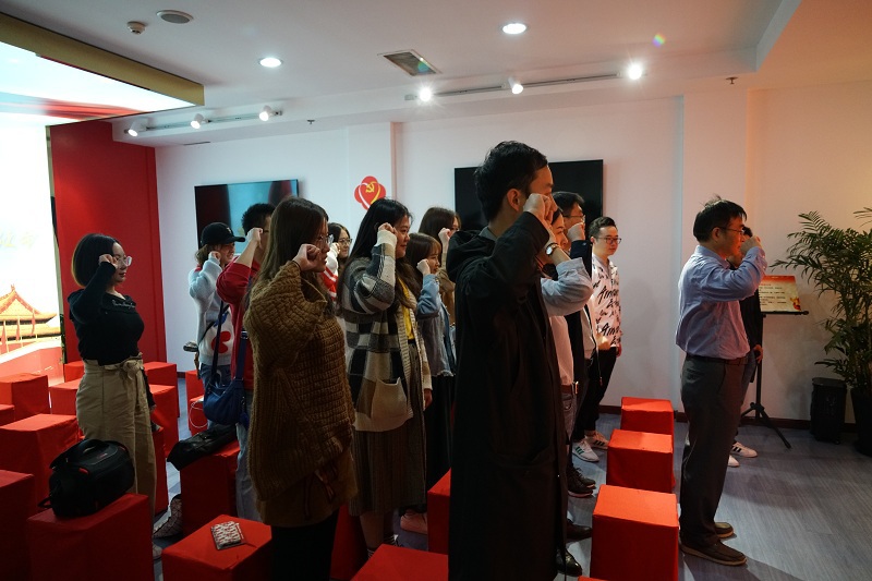 参观完展览后,由教工第三党支部书记王雁冰同志领誓,学院师生党员一起重温入党誓词,在庄严的誓词下接受心灵的净化与洗礼,牢记共产党员的责任与使命。
