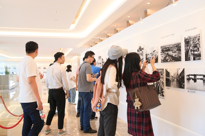登顶苏州国金中心,入眼即是反映苏州这座城市70年来发展变化的老照片。本次展览设置东、西两个展区。西区为新中国成立70周年苏州建设成果展——共展出20个重大项目40多幅图片;东区为苏州历史图片展——按照古城新生、百姓生活、百业行当、古城旧影等四个主题展示了苏州珍贵历史图片130多幅。