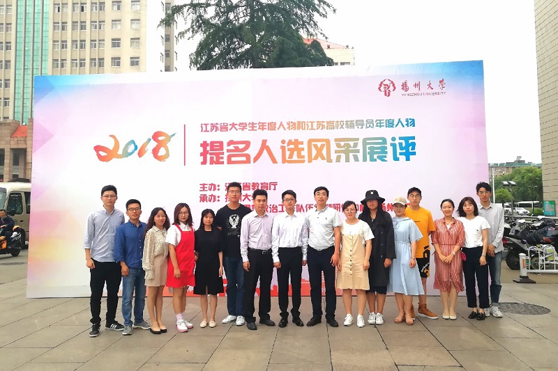 为深入学习宣传贯彻习近平新时代中国特色社会主义思想和党的十九大精神,积极培育和践行社会主义核心价值观,弘扬“中国梦”时代主旋律,宣传表彰大学生先进典型,“2018年江苏省大学生年度人物提名人选”风采展评活动于5月25日在扬州大学荷花池校区举行。传媒学院马国元同学作为2018年江苏省大学生年度提名人物进行风采展评,苏州大学学生处副处长潘爱华,传媒学院副书记、副院长夏凤军等一行16人作为苏州大学代表前往现场进行观摩。