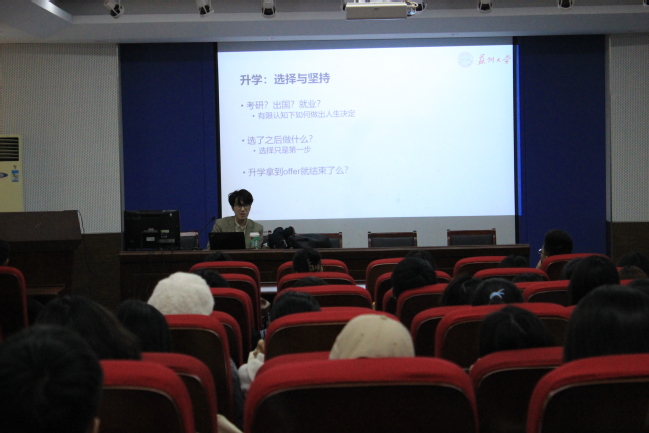 本次应老师的讲座,激励同学们刻苦学习专业知识,增强自身竞争力,使同学们更清楚地认识到生涯规划的重要意义,并且对如何适应大学学习生活、如何调整自己的心态等问题都有很大的帮助。