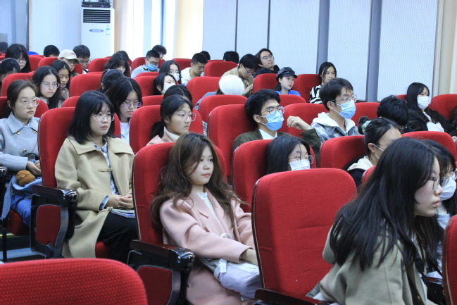 应浩江老师以《大学求学和个人发展的认知》为题,与同学们分享了自己的本科、硕士、博士求学经历,讲述了自己面临选择时的内心感受与想法,为广大新生的自我认知和未来发展提供了宝贵的经验。最后,针对同学们提出的有关专业分流、升学就业等问题,应浩江老师一一解答,并提出了相应的建议。应浩江老师勉励同学们在现阶段打好基础,不论是选择升学还是就业都要尽早做好准备,并不断付出努力,以奋斗书写青春答卷。
