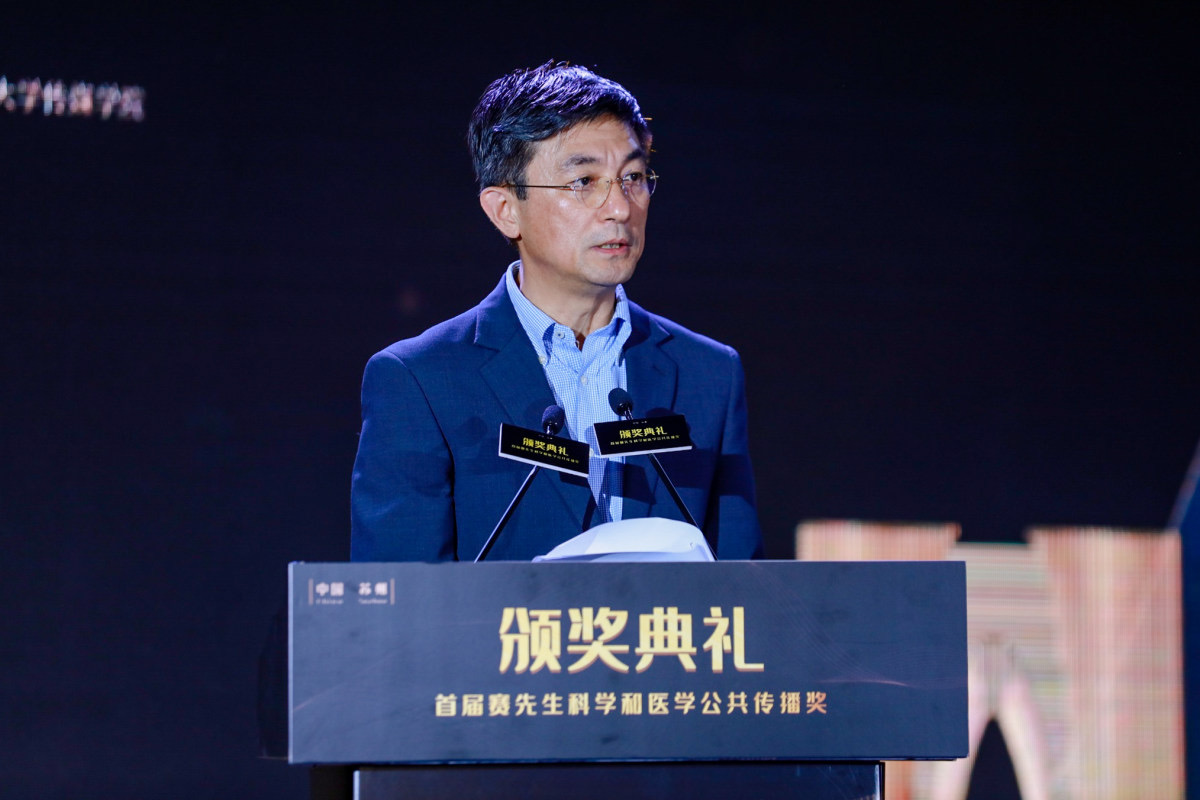熊思东校长代表首届‘赛先生’科学与医学公共传播奖的颁奖典礼的主办单位之一苏州大学在颁奖典礼上致辞