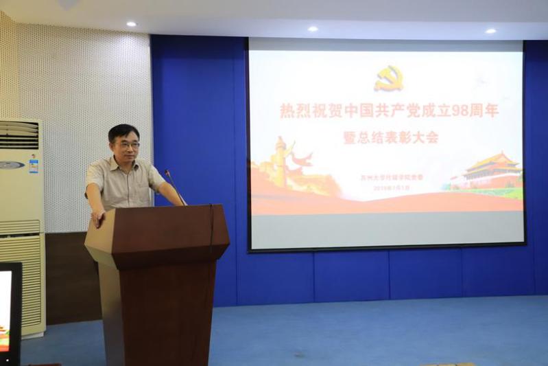 2019年7月1日下午,传媒学院庆祝中国共产党成立98周年暨总结表彰大会在1005幢5148会议室顺利召开。出席本次会议的有学院党委书记宁正法、院长陈龙、副院长谷鹏、徐冉以及学院各党支部学生与教职工代表。会议由学院党委副书记、副院长夏凤军主持。